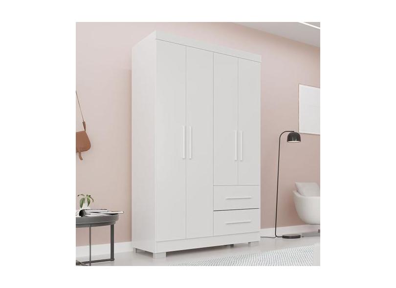 Guarda-Roupa Solteiro Diamante Premium 4 Portas 2 Gavetas com Pé Branc