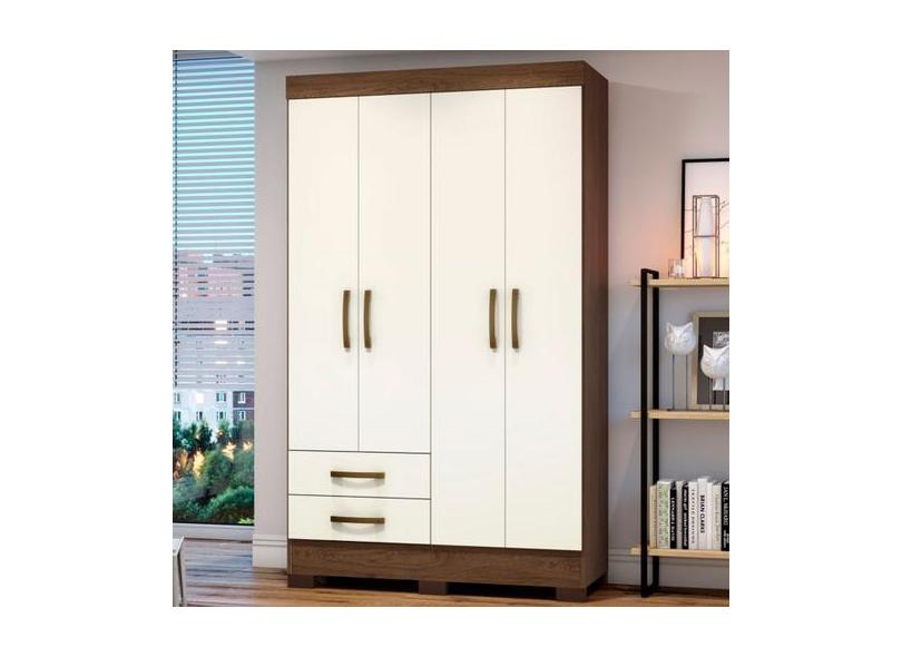 Guarda-Roupa Solteiro Fabuloso 4 Portas 2 Gavetas Castanho Hp/Off Whit