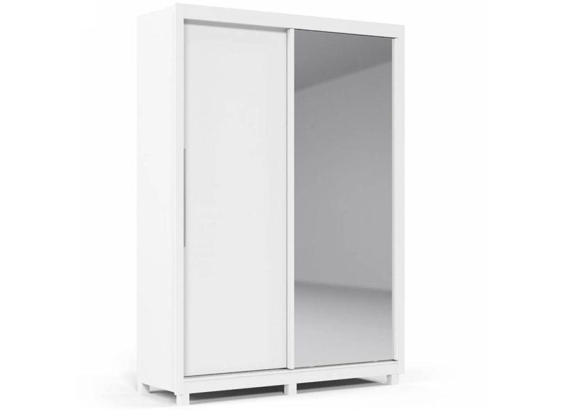 Guarda Roupa Solteiro Gelius Royale 2 portas de correr 3 gavetas com espelho pés Branco Acetinado