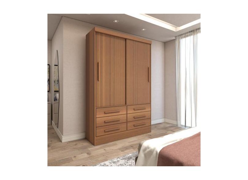 Guarda-Roupa Solteiro Guaianases 2 Portas 6 Gavetas Cinamomo/Off White