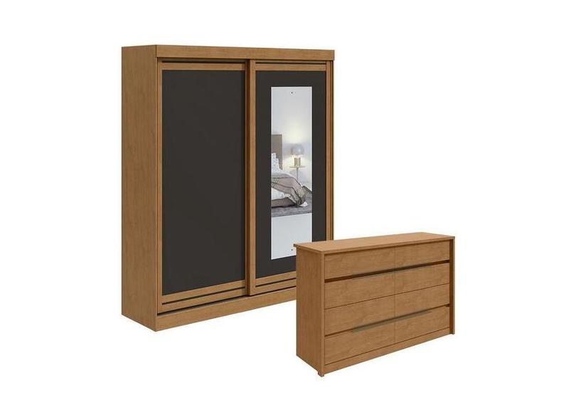 Guarda Roupa Solteiro Lani Com Espelho E Cômoda Urban Amêndoa Clean Pr