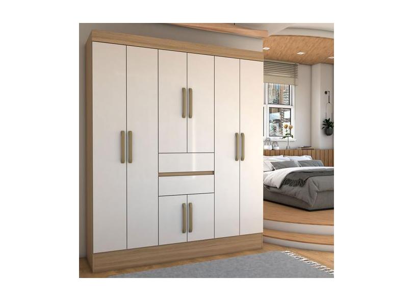 Guarda-Roupa Solteiro Leal Slim 8 Portas 2 Gavetas Amêndola Touch/Off