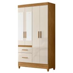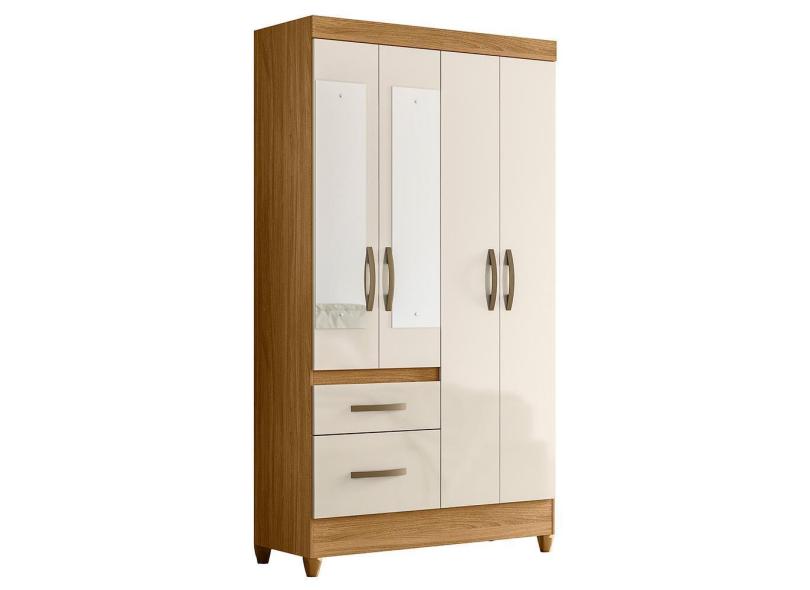 Guarda Roupa Solteiro Madri 4 Portas E 2 Gavetas Freijó/Off White Com Espelho - Moval