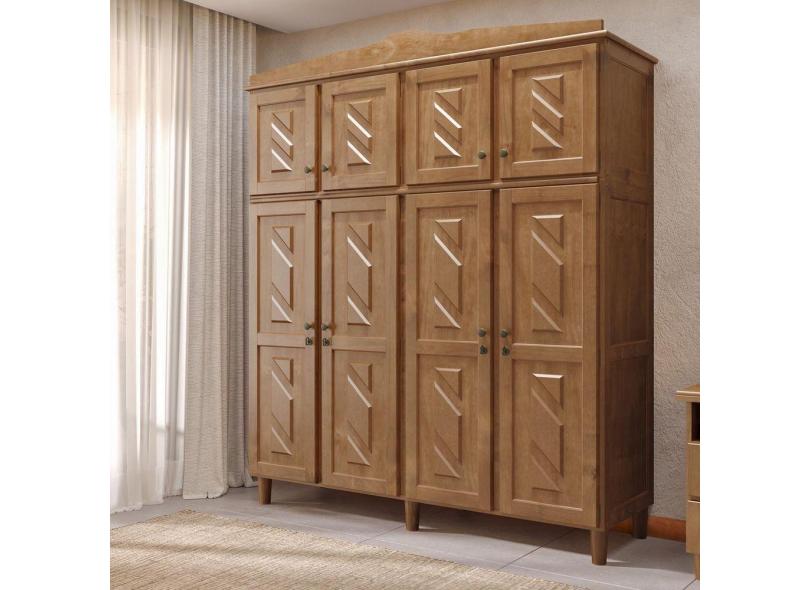 Guarda-roupa Solteiro Milão Imbuia 4 Portas Maleiro 2 Gavetas Madeira Pinus