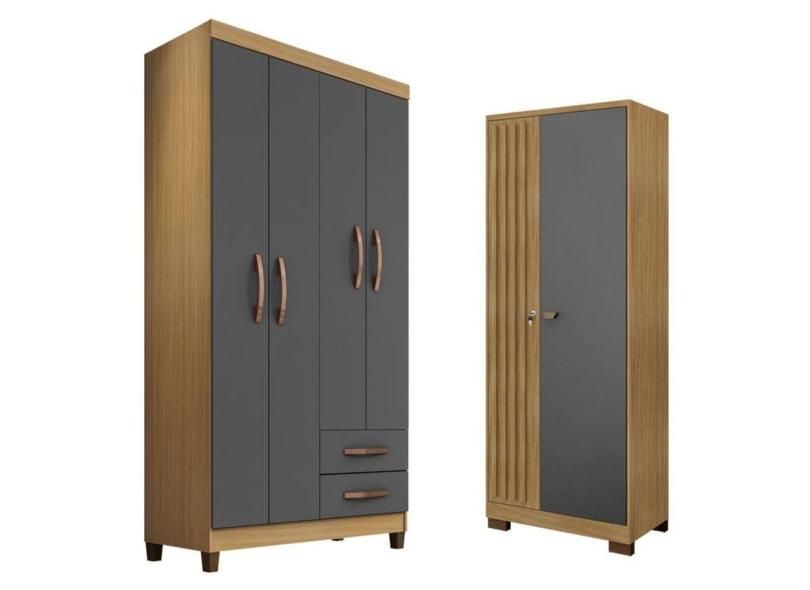 Guarda Roupa Solteiro Modena 4 Portas e Armário Multiuso Versatile Carvalho Americano Grafite - Incorplac