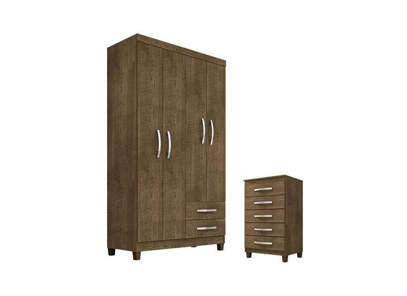 Guarda Roupa Solteiro Modena 4 Portas e Cômoda Gaveteira Cannes Malbec