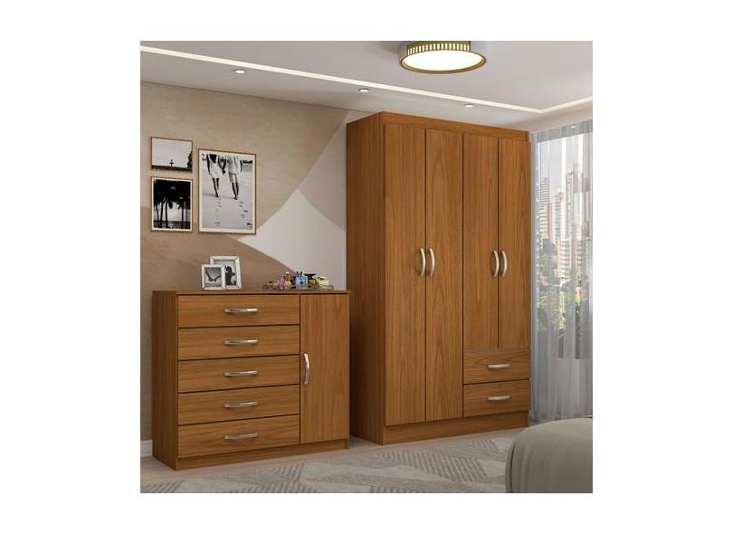 Guarda-Roupa Solteiro Natalie 4 Portas 2 Gavetas Com Cômoda 1 Porta 5