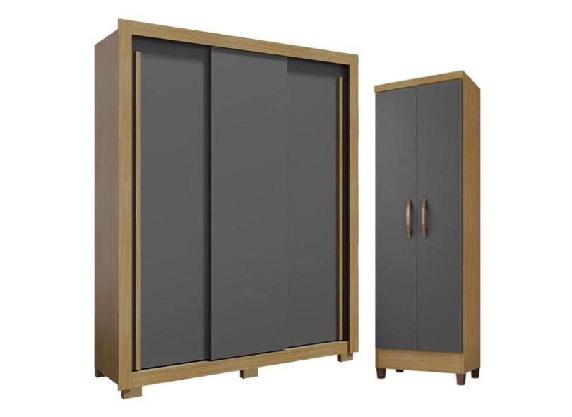 Guarda Roupa Solteiro Nevoa Flex 3 Portas de Correr e Armário Multiuso Egito Carvalho Americano Grafite - Incorplac