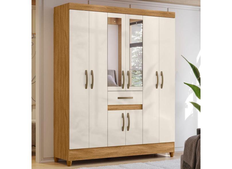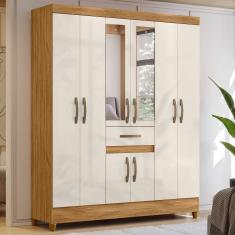 Guarda Roupa Solteiro Portugal Freijó Off White Com Espelho Moval