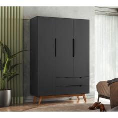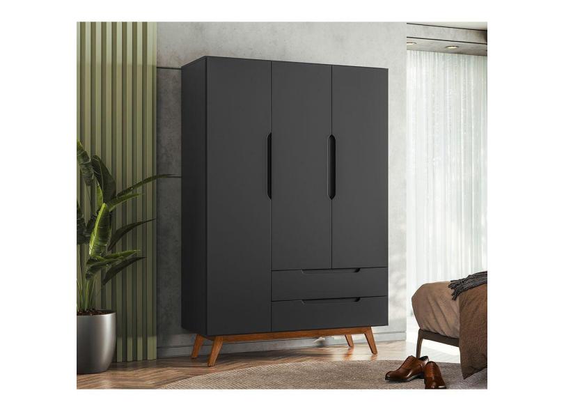 Guarda Roupa Solteiro Retrô Vintage Alpi - Preto Acetinado - Cor: Preto