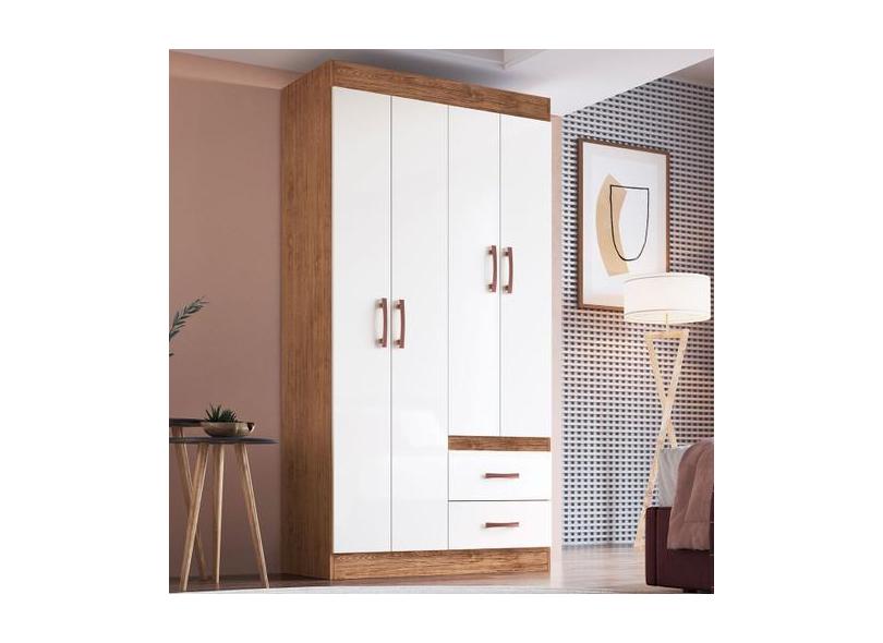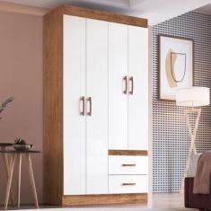 Guarda-Roupa Solteiro Rosario 4 Portas 2 Gavetas Off White Nogueira -