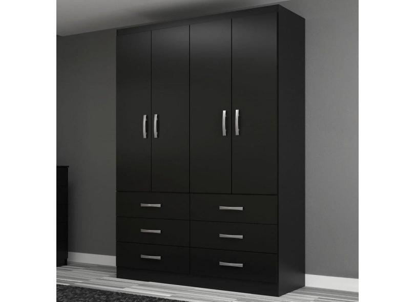 Guarda-Roupa Solteiro Treviso 4 Portas 6 Gavetas Black - Evidência Móveis