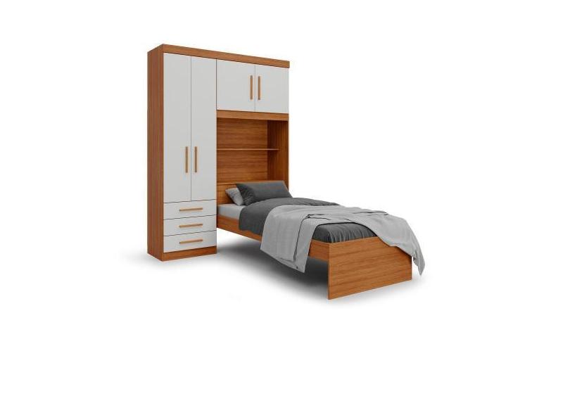 Guarda Roupa Solteiro Turim Com Cama E Cabeceira Bau Freijo Off White