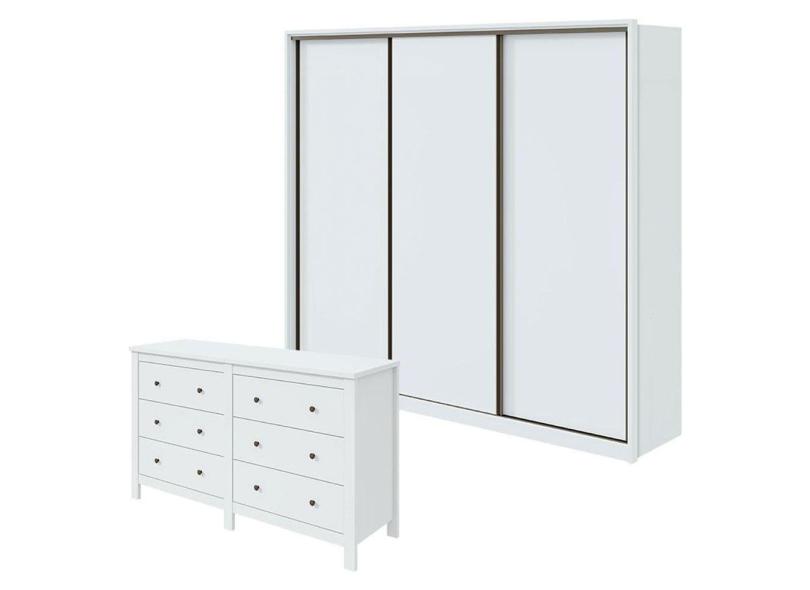 Guarda Roupa Spazio 270 e Cômoda Maggiore Branco Brilho - Lopas