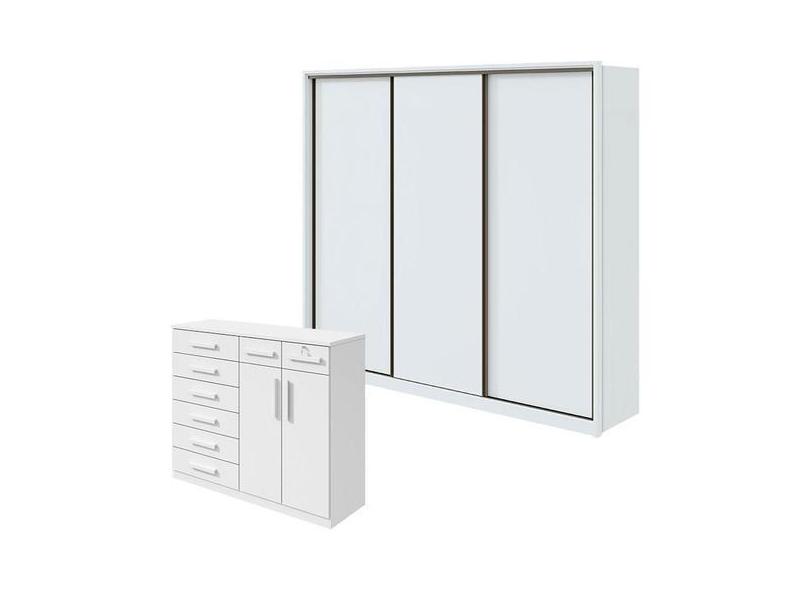 Guarda Roupa Spazio 270 e Cômoda Toronto Branco Brilho - Lopas - MÓVEI