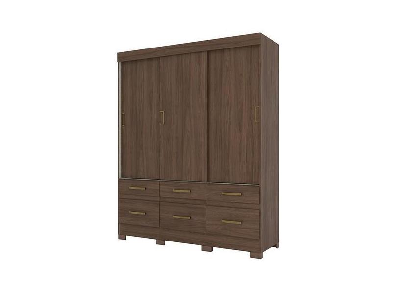 Guarda Roupa Taiga 3 Portas De Correr E 6 Gavetas Flex Castanho - Móve