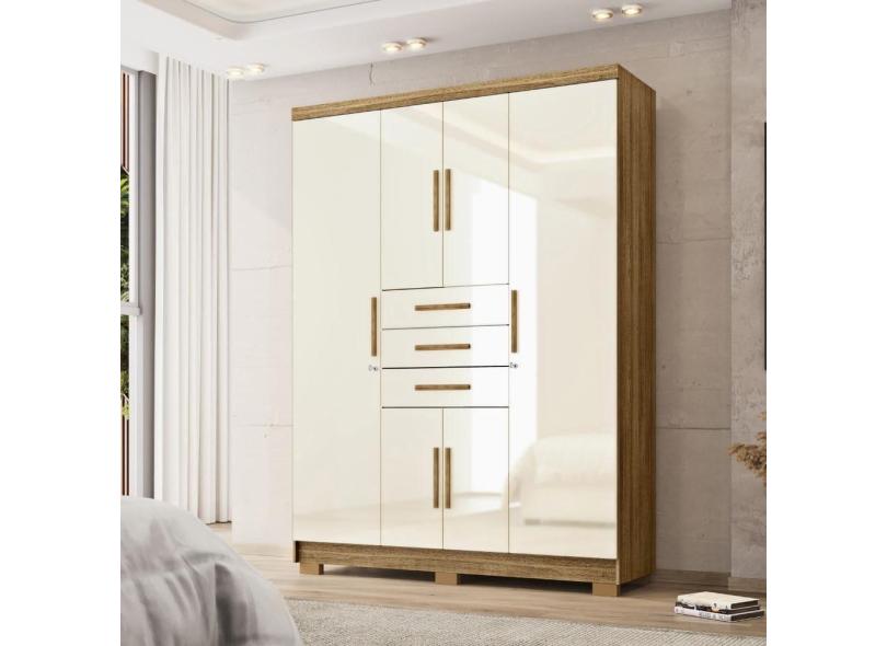 Guarda Roupa Taurus Imperial 6 Portas e 3 Gavetas - Nature Champanhe - Vila Rica