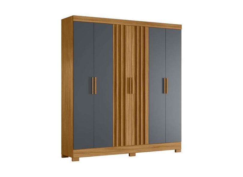Guarda Roupa Valença 195cm 6 Portas Freijó Cinza Com Portas Ripadas Mo