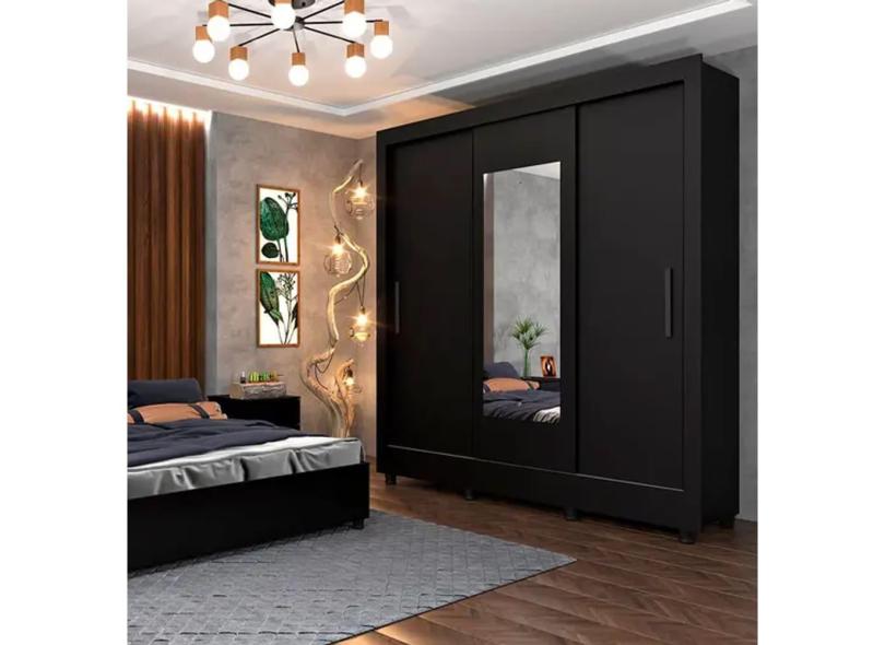 Guarda Roupa Valência com Espelho 3 Portas 4 Gavetas Tcil Móveis - Preto Fosco