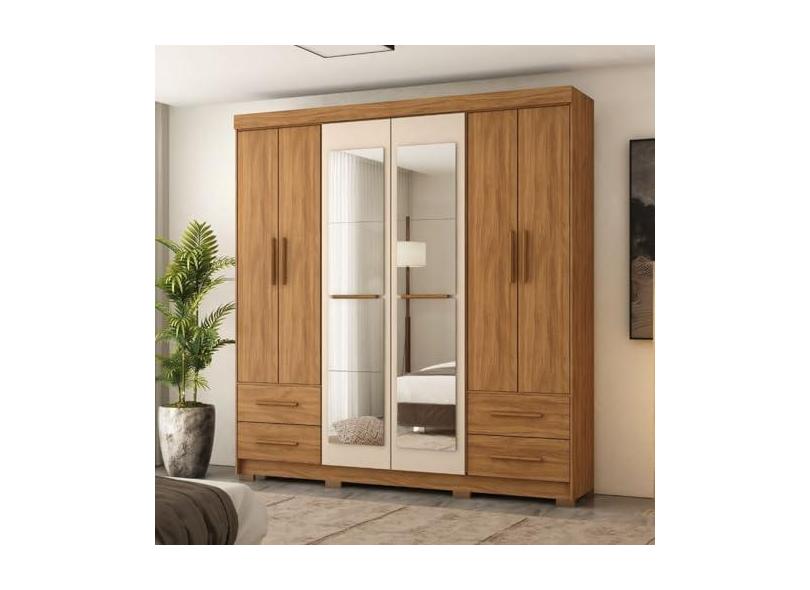 Guarda-roupa Vitorino 6 Portas e 4 Gavetas com Espelhos Freijó/avelã