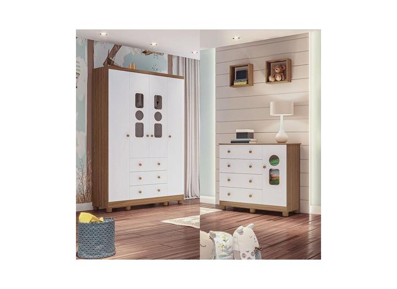 Guarda Roupas 04 Portas E Cômoda Moveis Peroba Tedy Infantil Mdf Bran