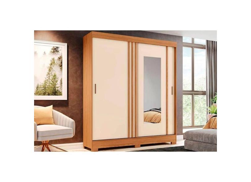 Guarda Roupas 2 Portas de Correr (1 c/ Espelho) e 2 Gavetas c/ Pés Briz B353 Nature/Cinza/Off White - Henn
