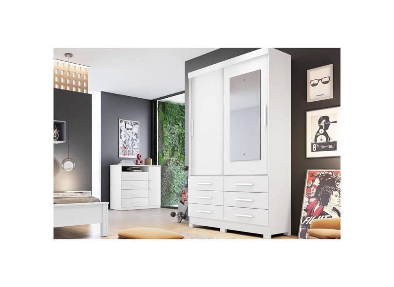 Guarda Roupas 2 Portas de Correr (1 c/ Espelho) e 6 Gavetas Buriti/Jequitibá Branco - Novo Horizonte