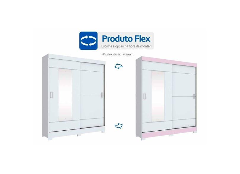 Guarda Roupas 2 Portas De Correr C Espelho Briz B66 Branco Rosa Henn