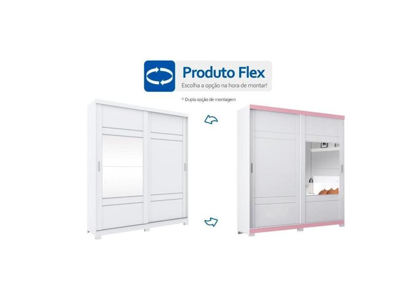 Guarda Roupas 2 Portas De Correr E 3 Gavetas Verg Branco Rosa Henn