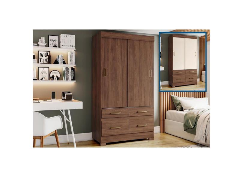 Guarda Roupas 2 Portas De Correr Marel C De Correr E 4 Gavetas Castanho Off White Henn