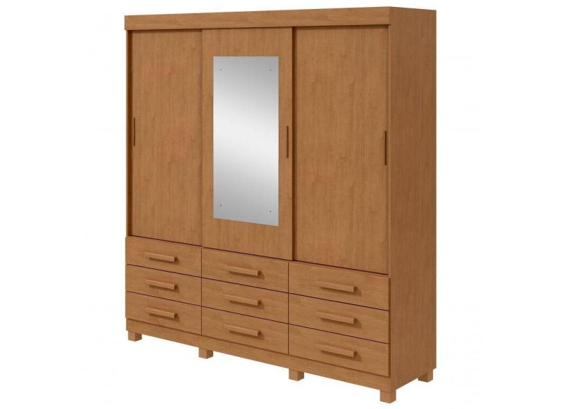 Guarda-roupas 3 Portas 9 Gavetas Anne Com Espelho Com Pés Amendoa Clean