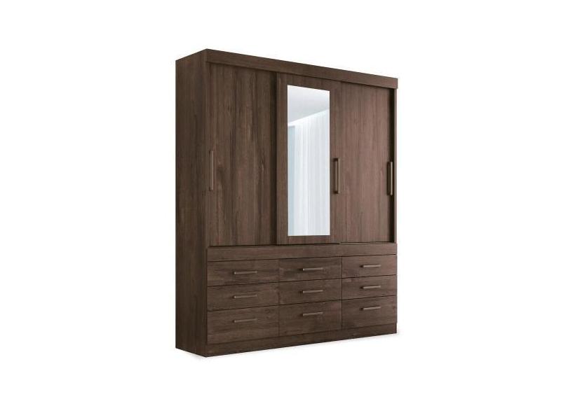 Guarda Roupas 3 Portas 9 Gavetas Com Espelhos Chef Ébano - Santos Andi