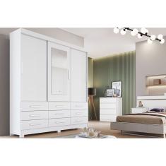 Guarda Roupas 3 Portas de Correr (1 c/ Espelho) e 9 Gavetas Buriti/Jequitibá Branco - Novo Horizonte