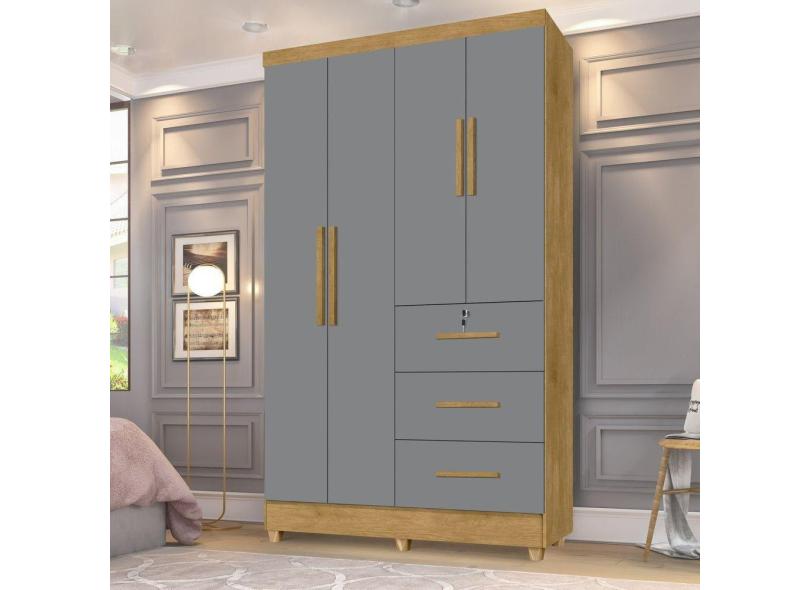 Guarda Roupas 4 Portas 3 Gavetas Tokio Marrom/Cinza