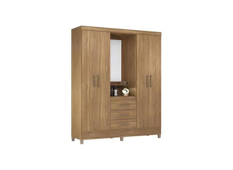 Guarda-roupas Casal 4 Portas 3 Gavetas e Espelho Multimóveis Cr35190 Amêndola