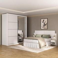 Guarda-Roupas Casal c/Espelho e Cabeceira Multimóveis MP4327, Branco