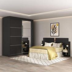 Guarda-Roupas Casal com Cabeceira/Espelho Multimóveis MP4328, Preto