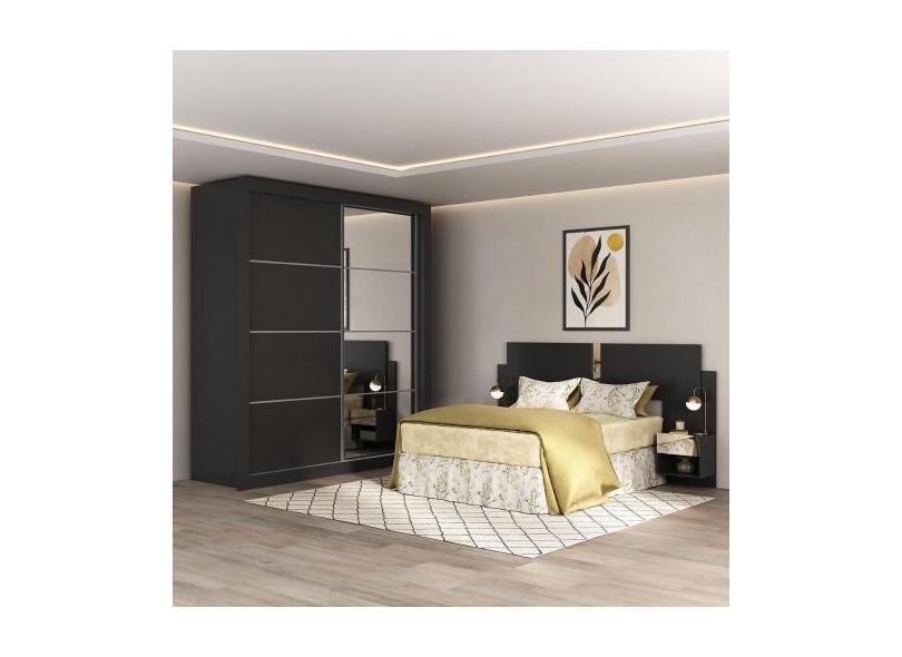 Guarda-Roupas Casal com Cabeceira/Espelho Multimóveis MP4328, Preto