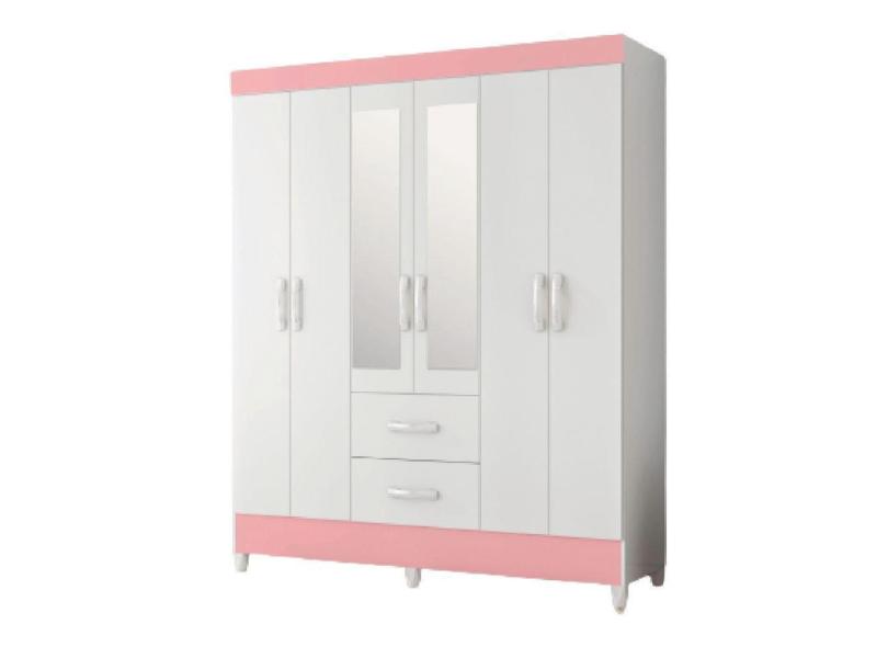 Guarda Roupas Casal Com Espelho 6 Portas 2 Gavetas Mobi Branco / Rosa Flex Albatroz Bc Bc Ros