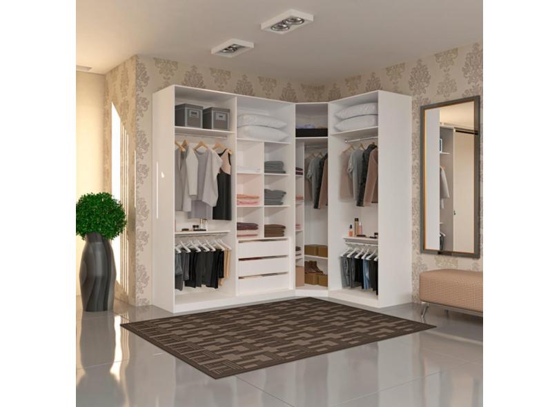 Guarda Roupas de Canto Closet Aberto 3 Módulos com 3 Gavetas 5 Cabideiros Prime Luciane Móveis - Branco