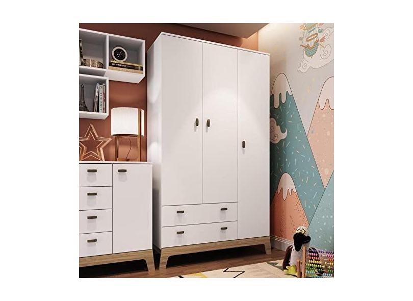 Guarda Roupas Infantil 03 Portas e 02 Gavetas Linha Favo de Mel Completa Móveis Branco