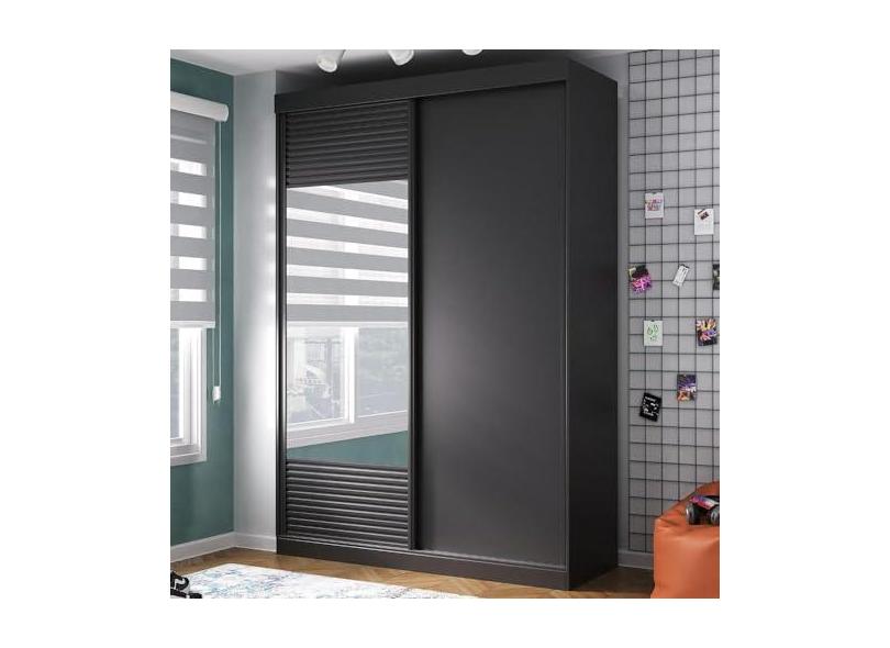 Guarda-roupas Infantil 2 Portas 1 Porta com Espelho Samambaia Teen Cabecasa Madeiramadeira Preto