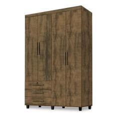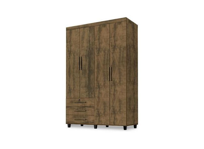 Guarda Roupas Madri Roupeiro 4 Portas + 3 Gavetas Amêndoa - SAO MIGUEL