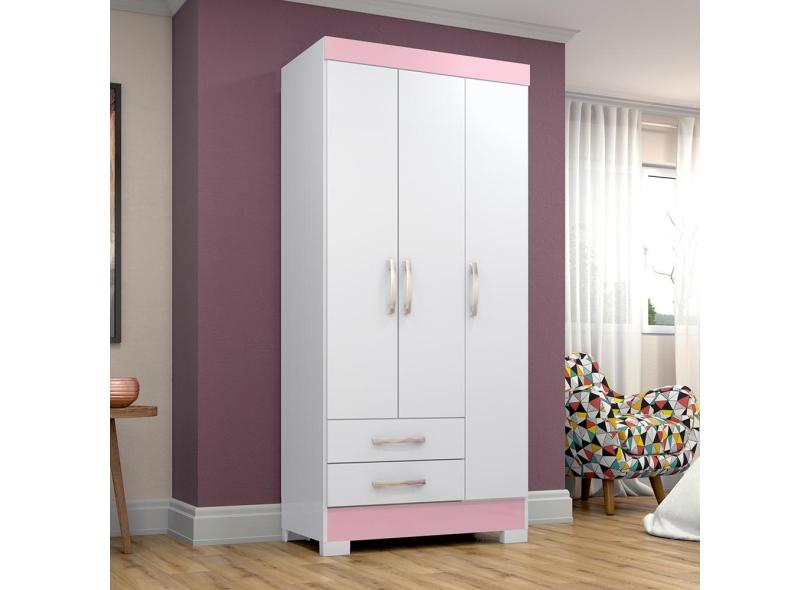 O menor preço encontrado no Brasil para Guarda Roupas Solteiro Com 3 Portas 2 Gavetas Sem Espelho BE16 Flex Branco / Rosa Chá - Briz Móveis atualmente é R$ 643,13.