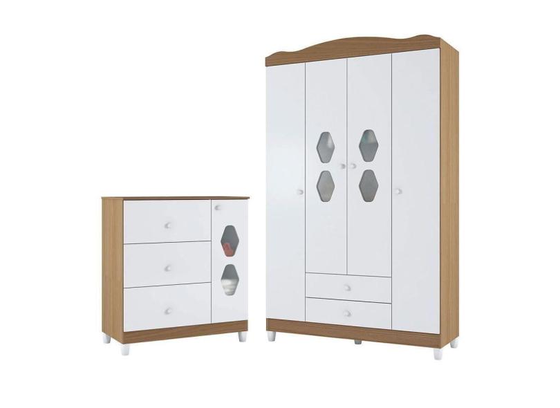 Jogo Cômoda E Guarda-roupa Braga Branco Almendra