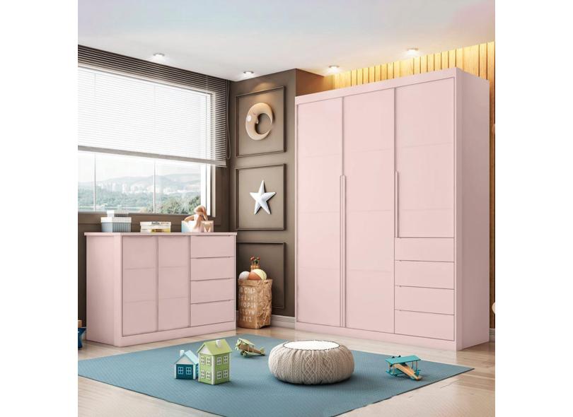 O menor preço encontrado no Brasil para Jogo De Quarto Com Guarda Roupa 3 Portas E 4 Gavetas + Cômoda 2 Portas E 4 Gavetas Pérola Rosê atualmente é R$ 2.399,06.