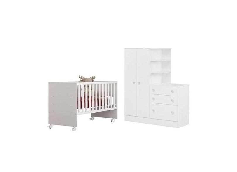Jogo De Quarto Doce Sonho Guarda Roupa, Cômoda E Berço Reto Branco - Q