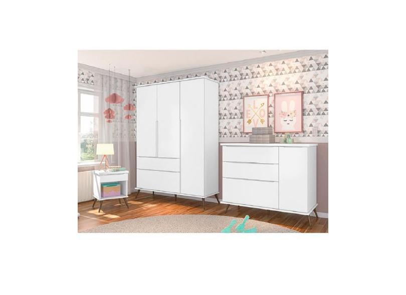 Jogo De Quarto Infantil De Bebê Melinda Branco 100% Mdf Guarda Roupa +