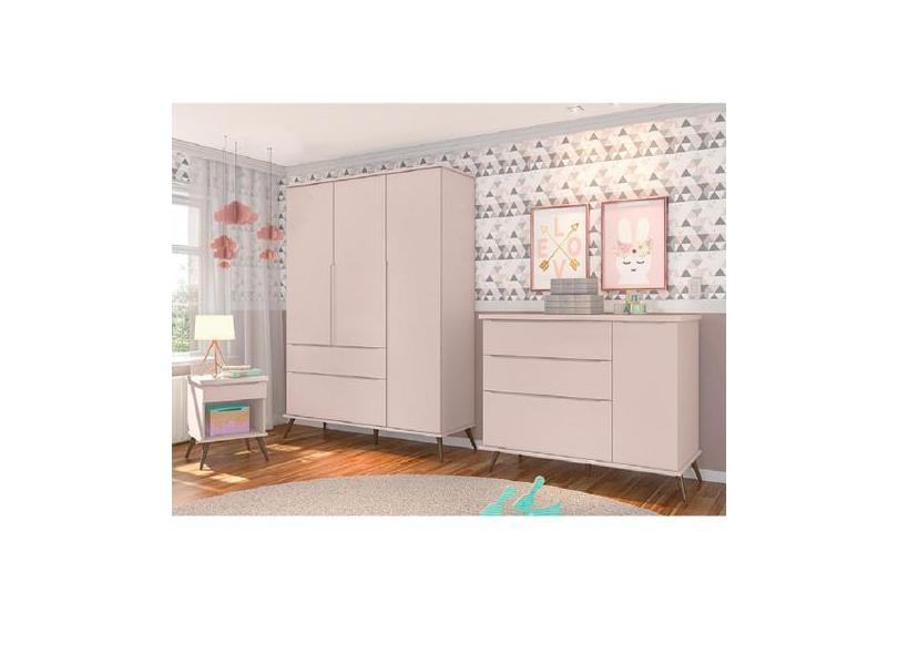 Jogo De Quarto Infantil De Bebê Melinda Rosê 100% Mdf Guarda Roupa + C