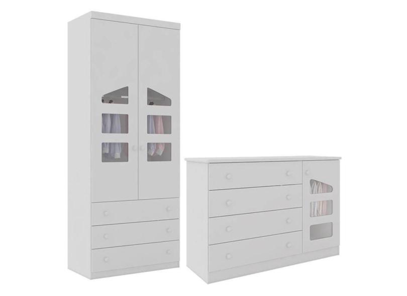 Jogo de Quarto Infantil Eloisa com Guarda Roupa 2 Portas e Cômoda - Phoenix Baby